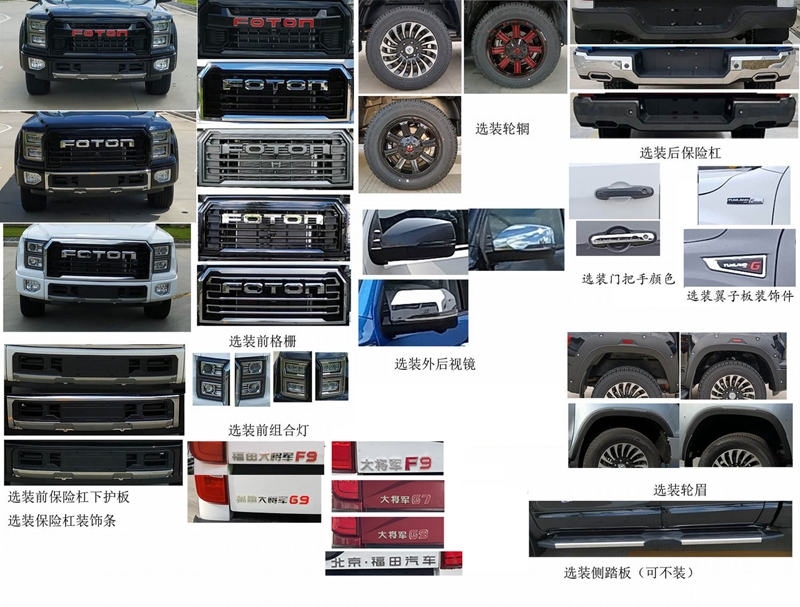 福田皮卡也在6字頭皮卡市場中占有重要位置,擁有基于大將軍系列皮卡打造的SUV乘用版車型。在官網上可見,該車擁有大將軍F9和護國大將軍G9的兩種前臉設計,后部貨箱部分也與車廂形成一體連接,并同樣提供了外推式開啟的側窗。